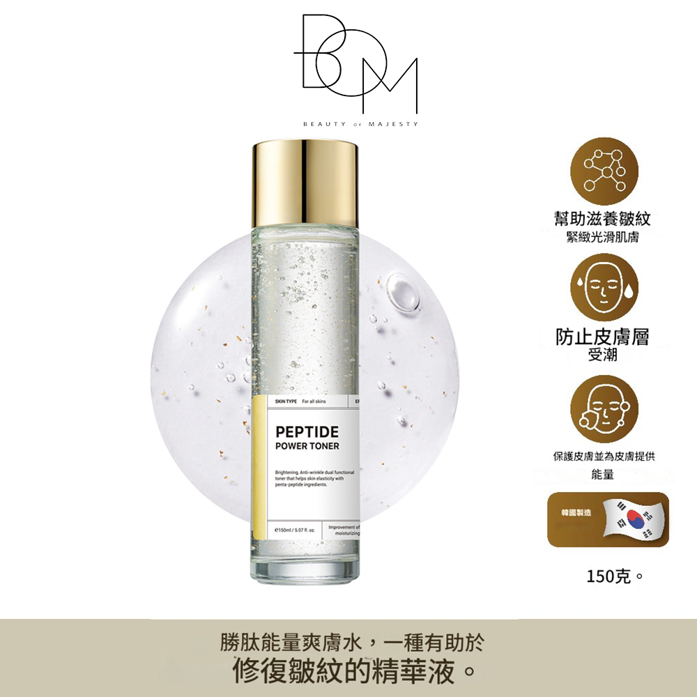 韓國原廠進口,含有專門改善皺紋的勝肽成分,為肌膚深層補充水分,打造緊緻肌膚的黃金修復能量勝肽精華水
