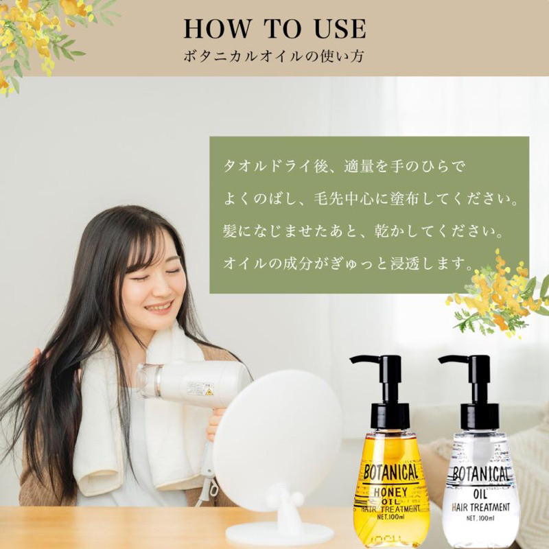 洗頭後擦乾頭髮後,用手掌塗抹適量份量,在髮尾中心塗抹。 抹在頭髮上後,擦乾後做造型。