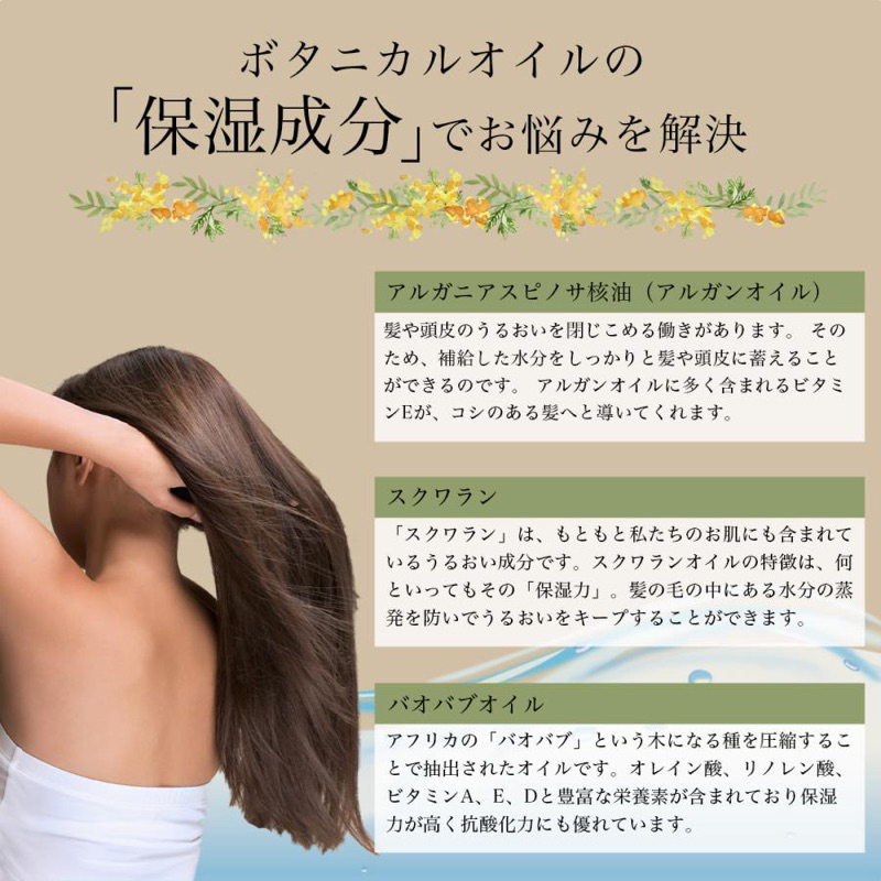 含植物油成分,讓頭髮柔順、有光澤、不毛躁