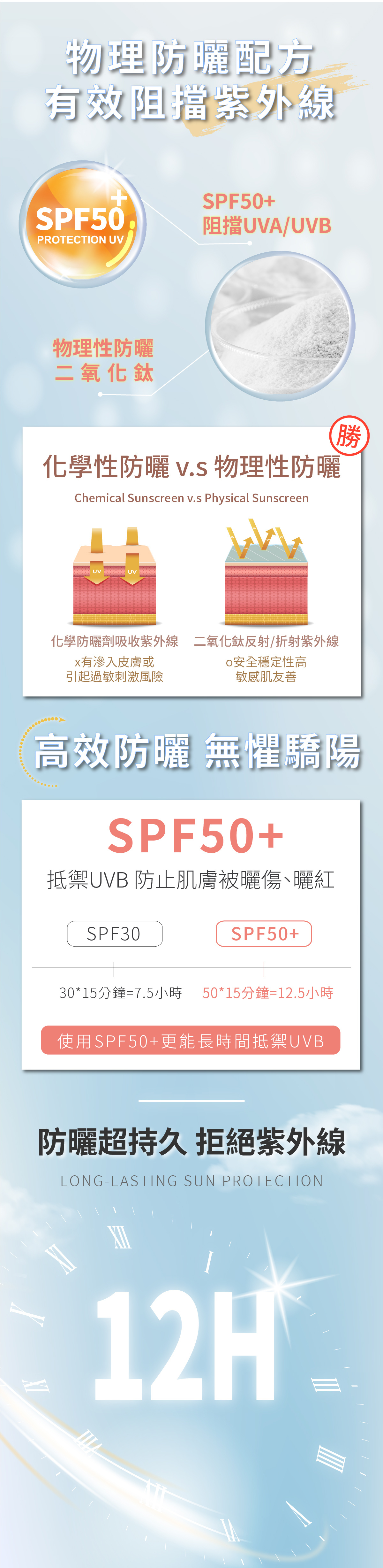 ◆純物理高係數防曬, UVA/UVB雙重保護