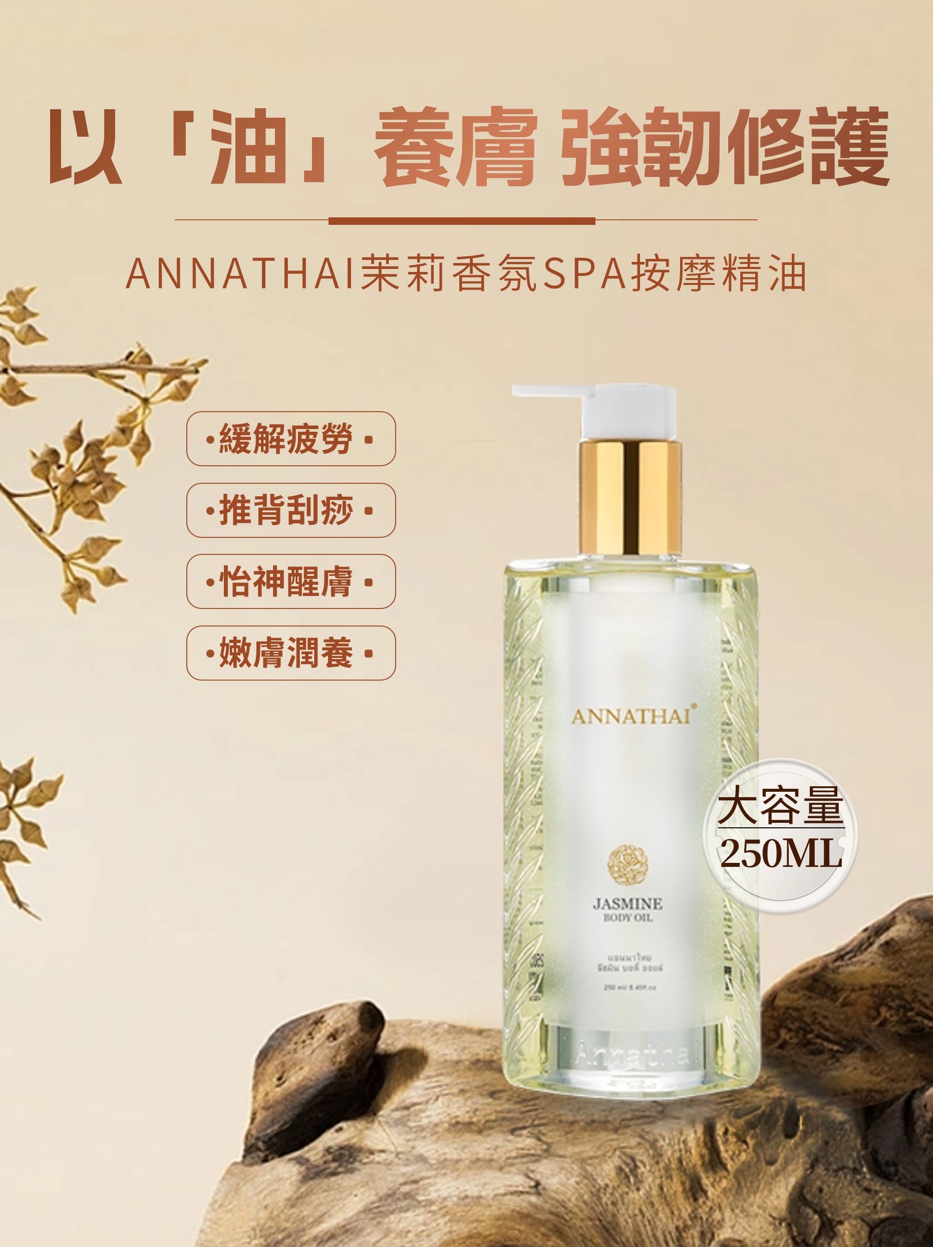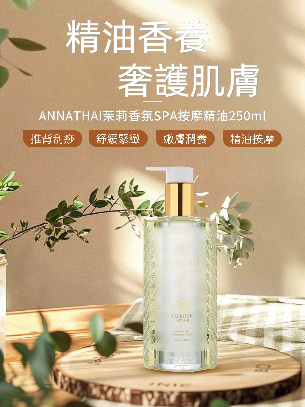 底,延展性極佳,能減輕壓力感及身體疲累感,泰國茉莉純天然植物按摩油能夠舒緩肌肉 緊繃,並以香甜感性的香氛令你達到身心的平衡。