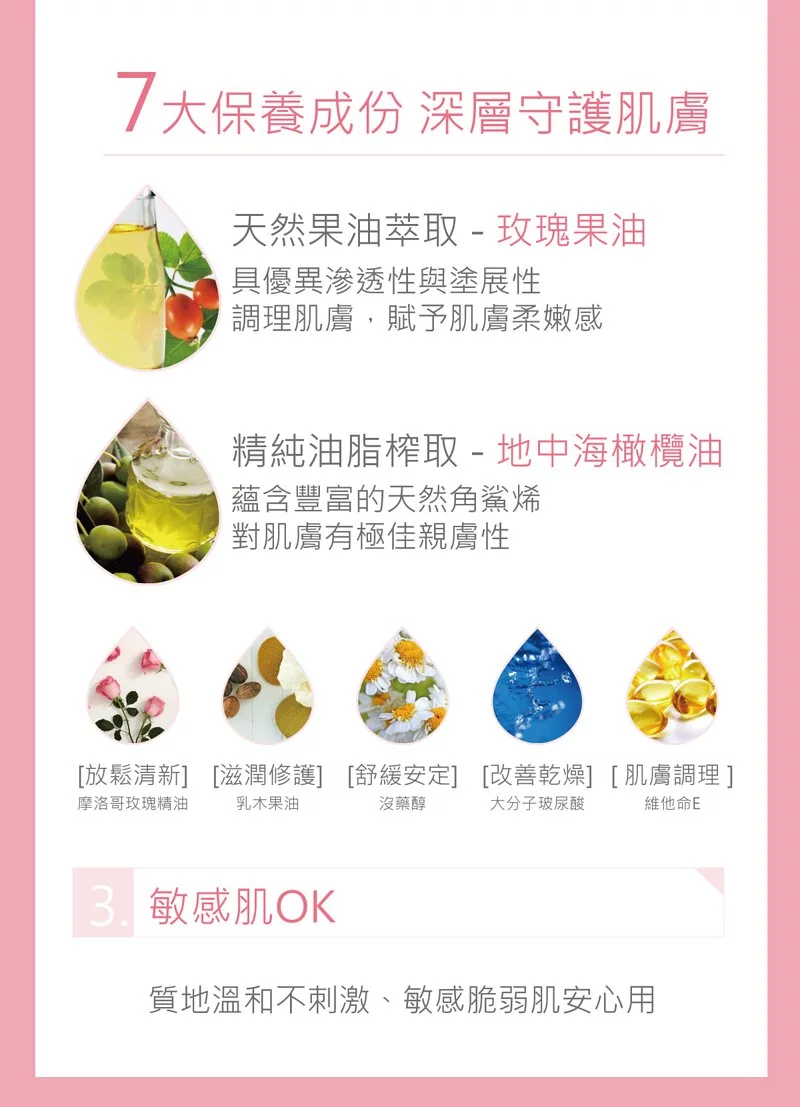 ✅添加摩洛哥玫瑰精油,芬芳香氣卸淨同時保濕保養