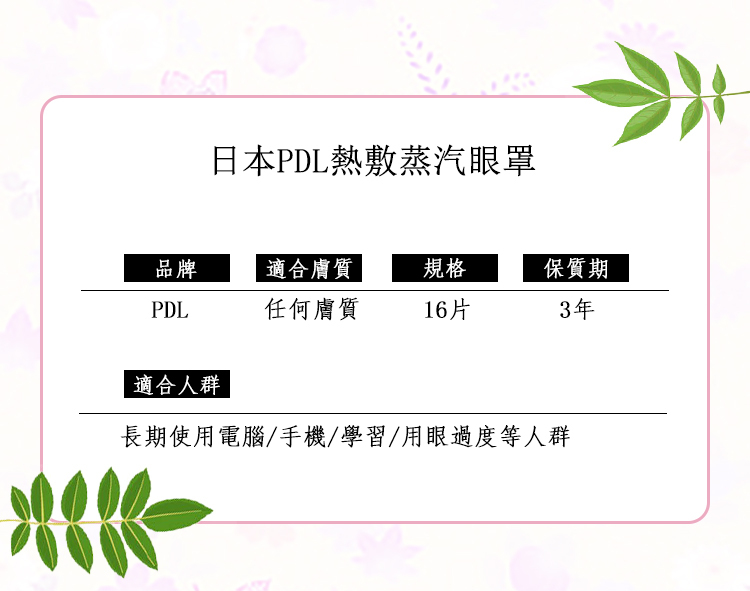 本PDL蒸氣眼罩16枚入 無香料/薰衣草/ 玫瑰/洋甘菊/柚子/櫻花 6款