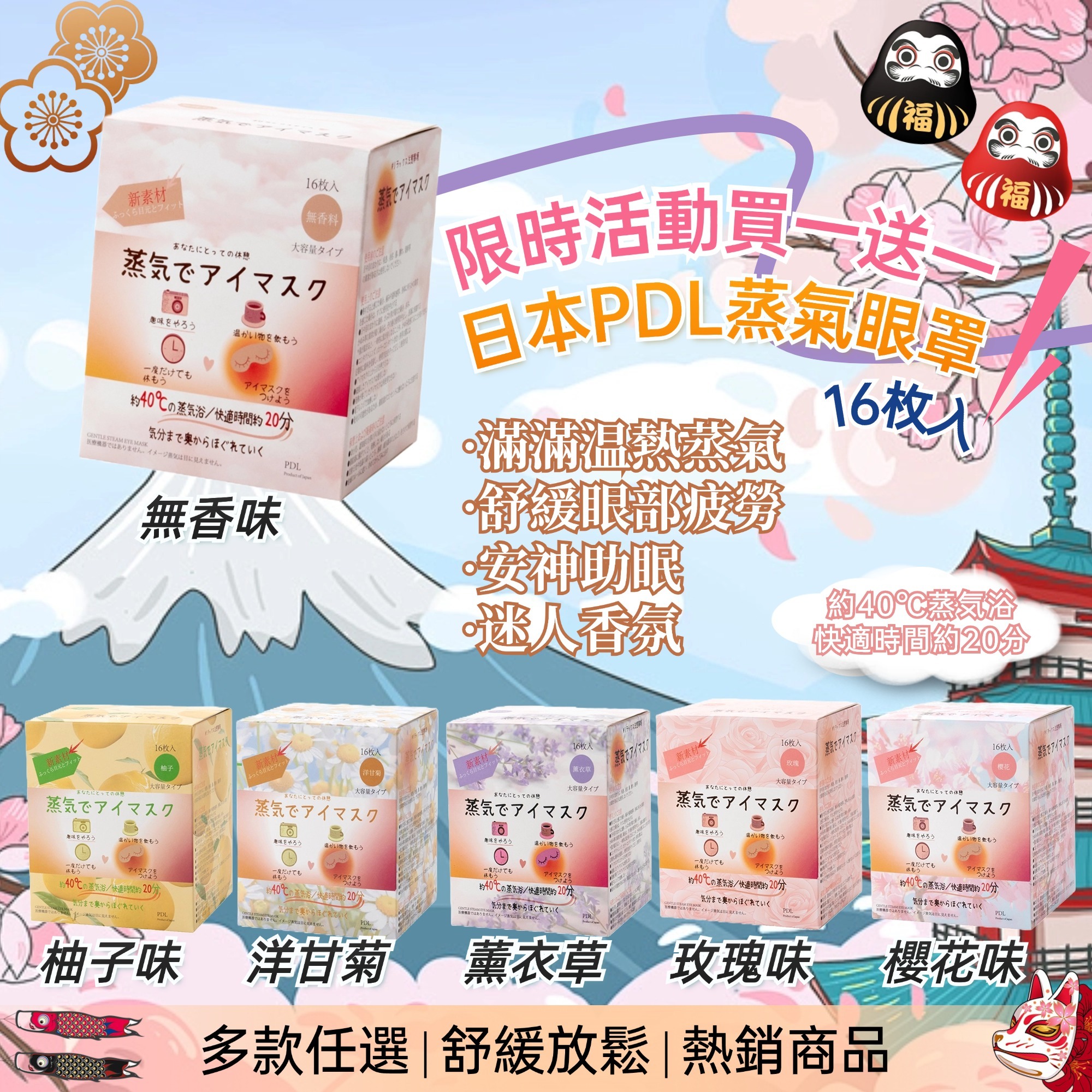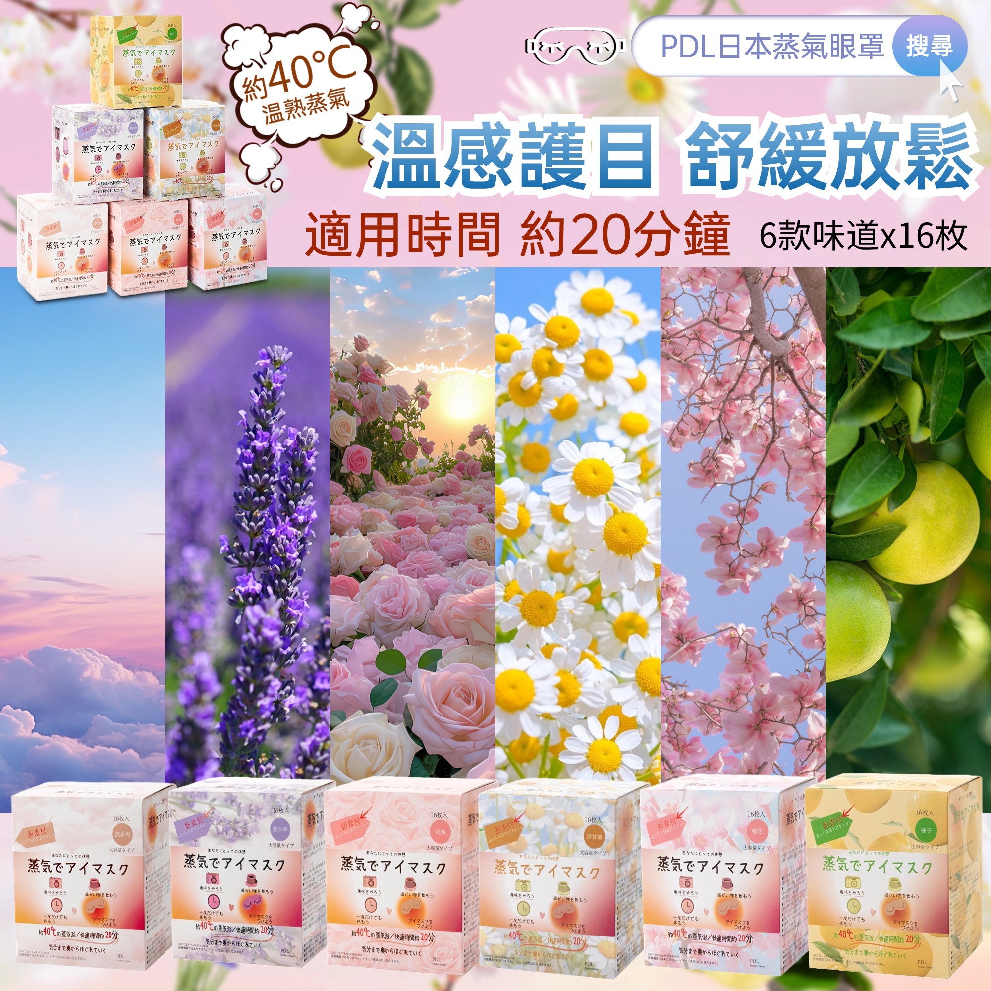 本PDL蒸氣眼罩16枚入 無香料/薰衣草/ 玫瑰/洋甘菊/柚子/櫻花 6款