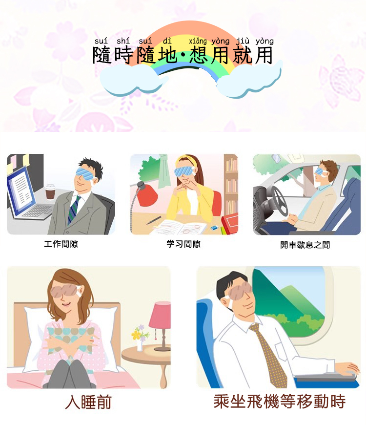 超薄材質,能緊密包覆雙眼,可感蒸汽,滋潤雙眸