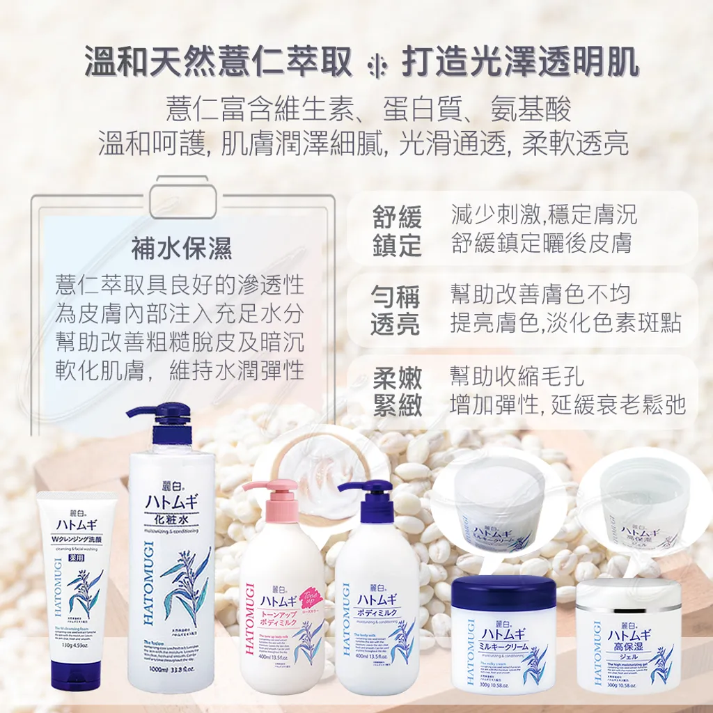 ●天然保濕成分薏仁提取物、凡士林、乳木果油,滲透角質層好吸收,讓肌膚不乾燥。