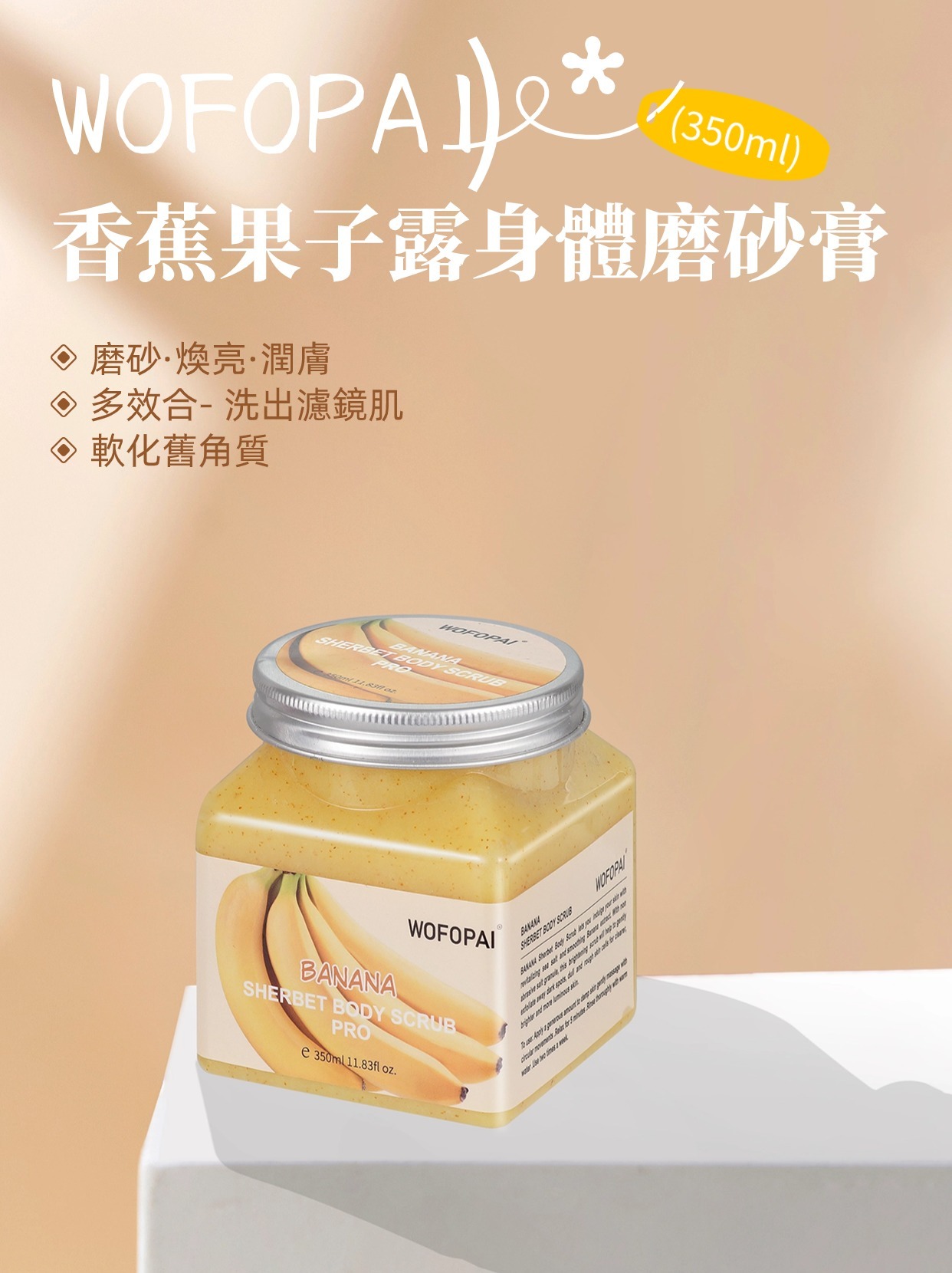 香蕉身體磨砂膏可讓您通過海鹽和香蕉提取物來平滑皮膚。 使用非磨料鹽顆粒,這種亮磨砂將有助於輕輕去除黑斑,暗淡而粗糙的皮膚細胞,以使皮膚更清晰,更明亮,更發光。